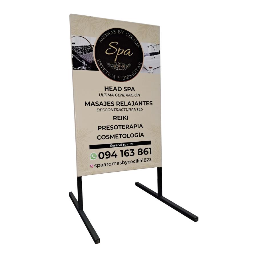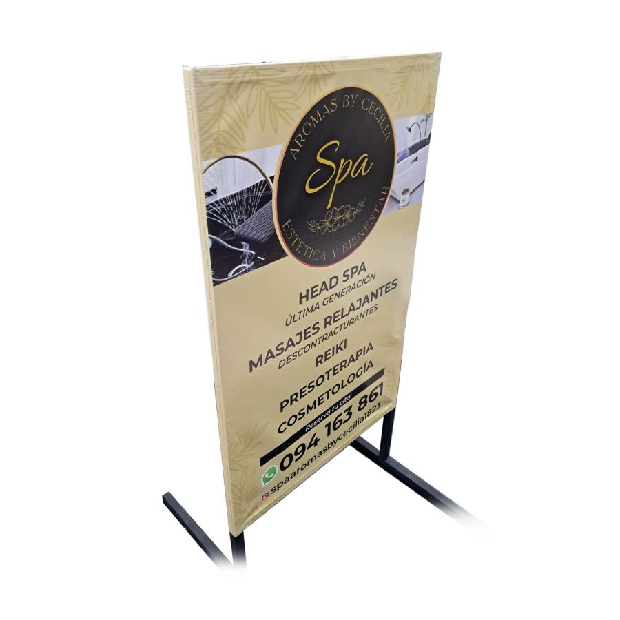 Cartel para vereda confeccionado con 2 lonas para exterior, con cuerda interna! y ojales en todo el perímetro.